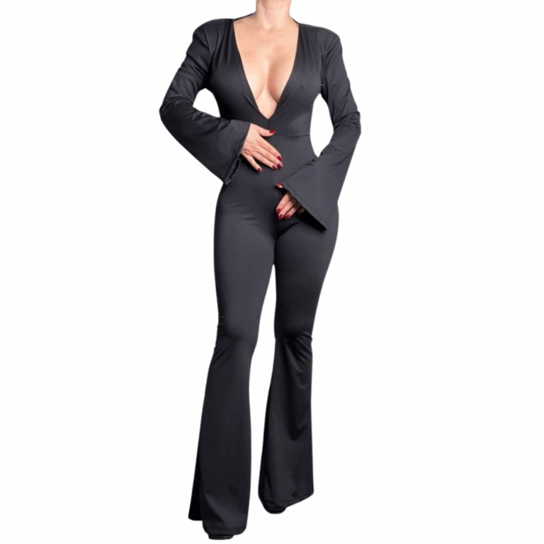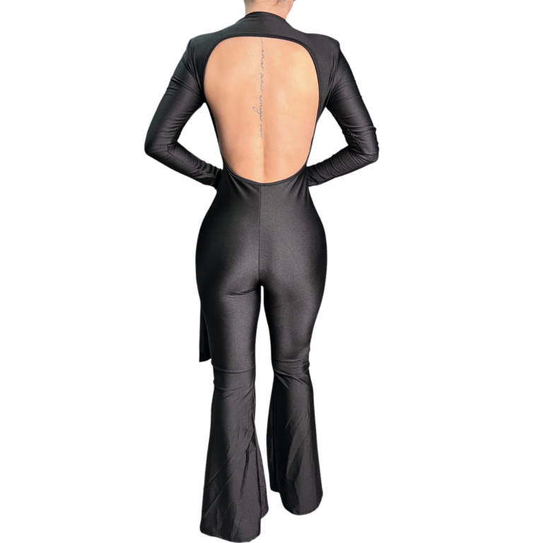 • Abito Tuta Jumpsuit aderente Scollo Profondo Posteriore Colore Nero – Nuunbrand